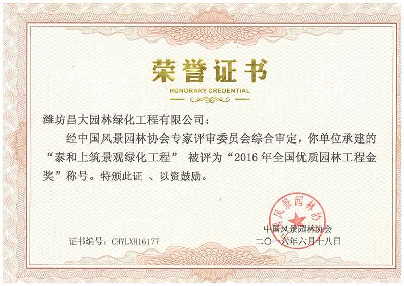 全國優質園林工程金獎